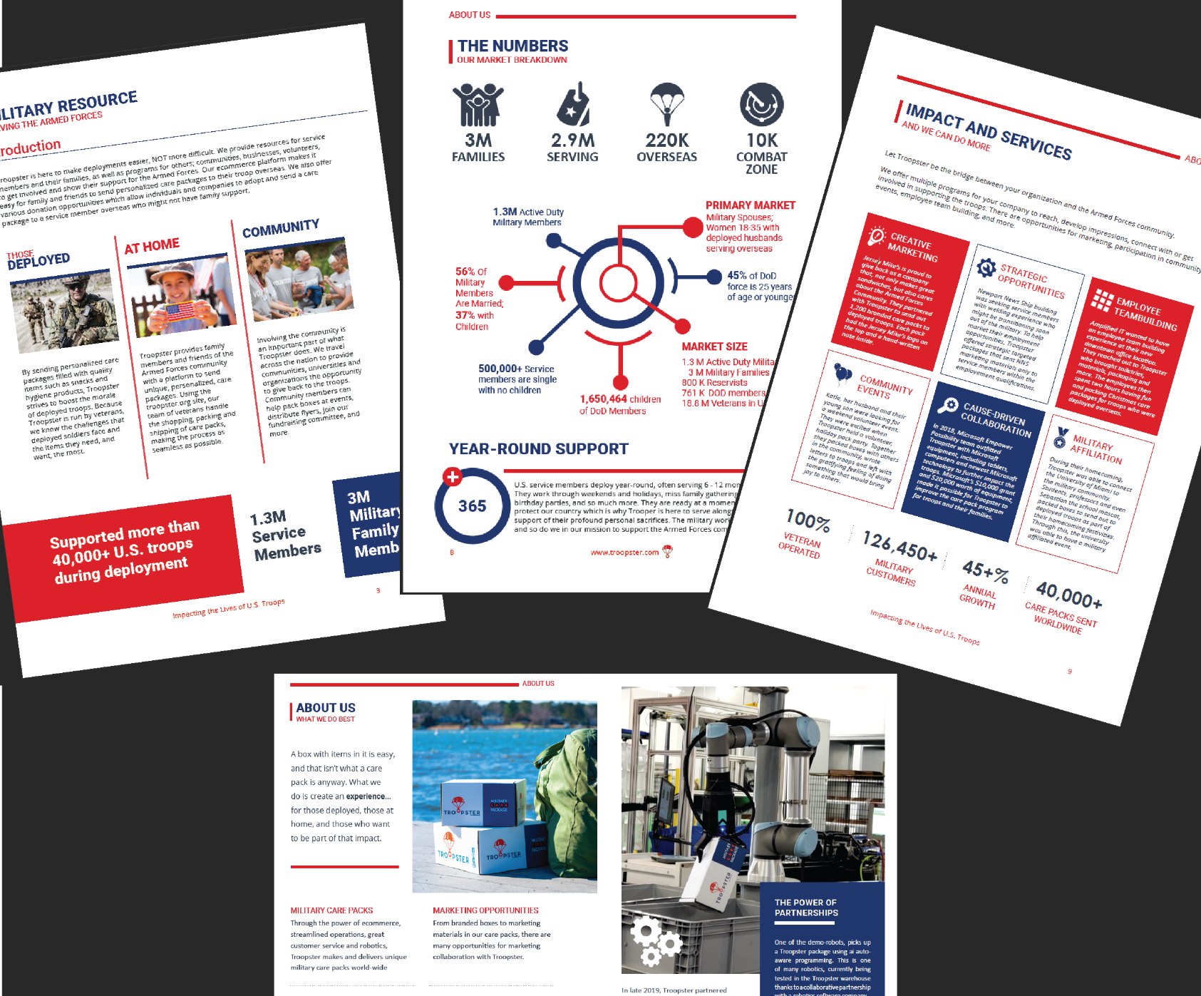 Pioneered the development of a personalized military packaging service, Troopster.com, that has successfully reached more than 68,000 U.S. service members across more than 62 countries worldwide and growing.